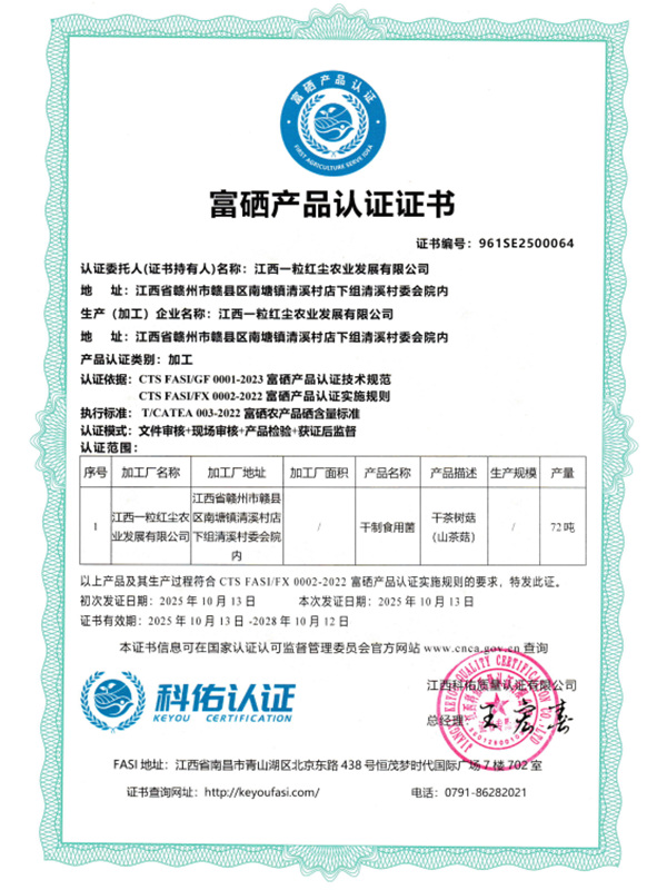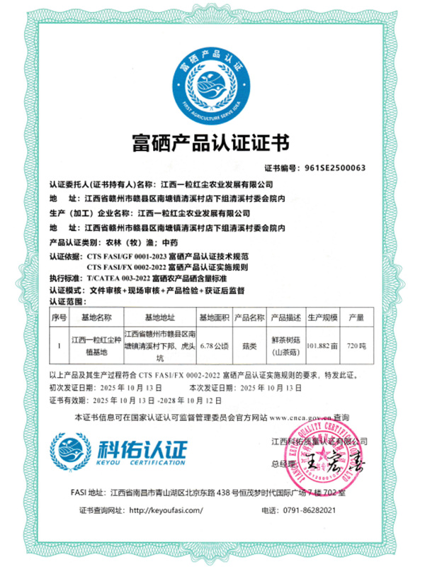江西一粒紅塵農業發展有限公司是一家總部位于江西省贛縣的現代農業多元型企業,專注于食用菌的研發種植、深加工、貿易、研教培、農文旅等全產業鏈發展。公司秉承“健康綠色、共享、共贏”的核心價值觀,致力于引領鄉村振興之路,旨在成為......